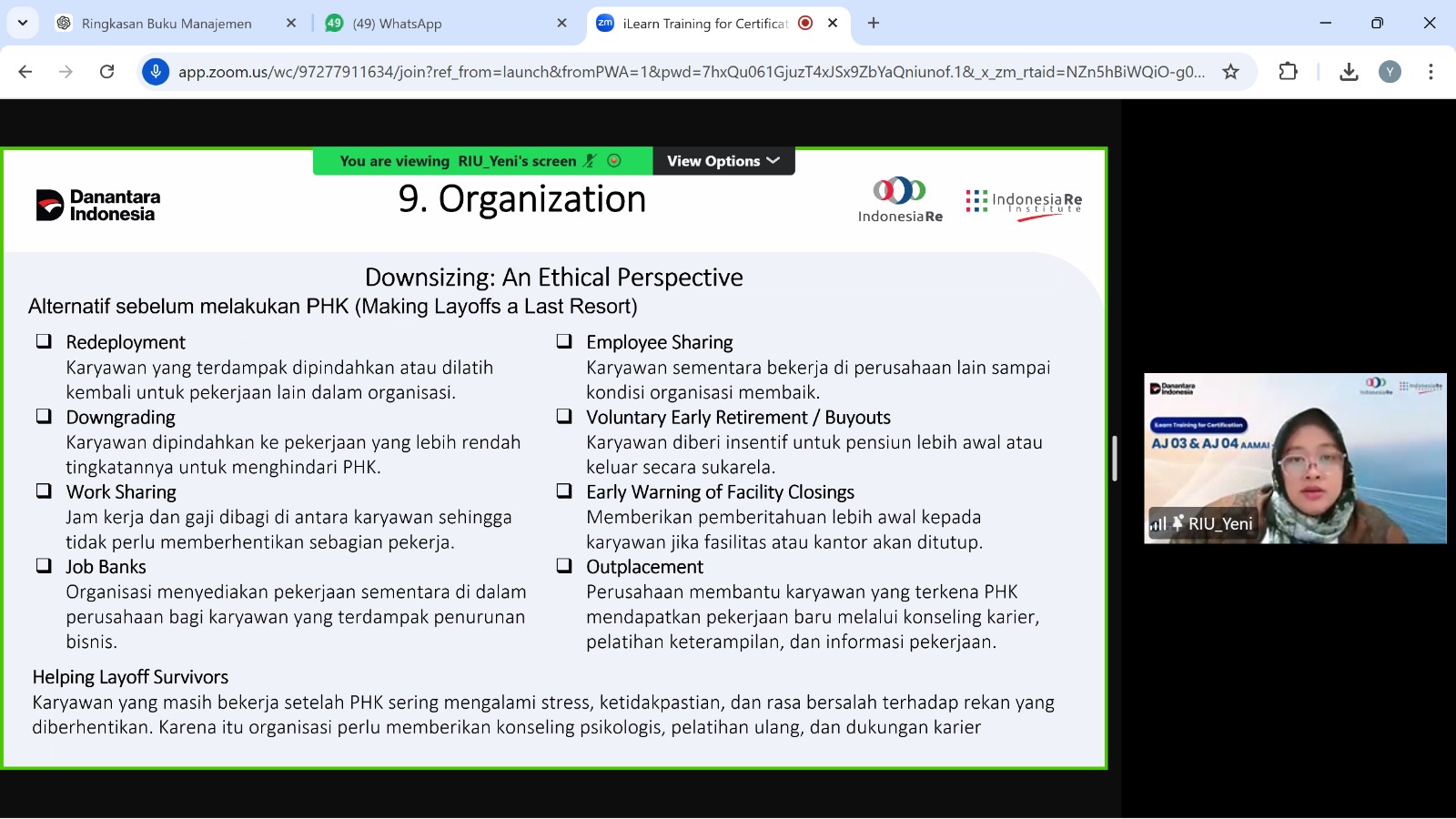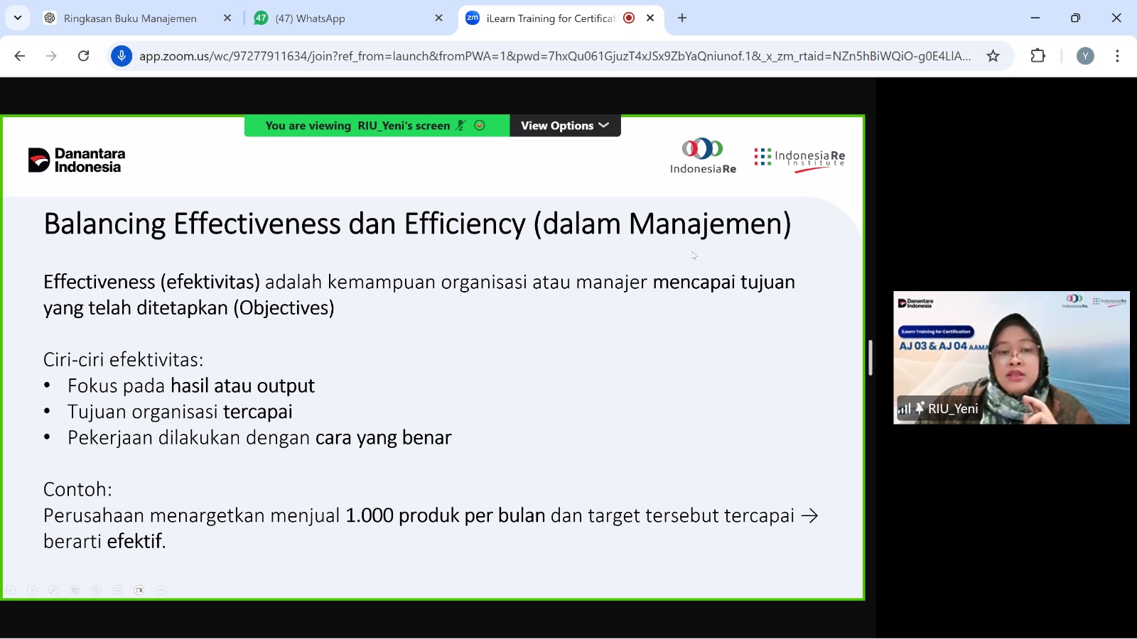 iLearn Training for Certification - AAAIJ Subject AJ 03 (Prinsip Manajemen dan Metode Statistik pada Perusahaan Asuransi) dan AJ 04 (Manajemen Risiko Asuransi)